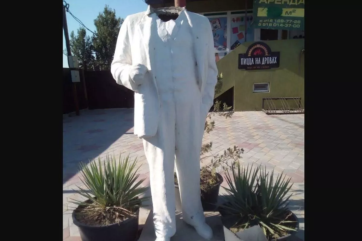Как раз перед входом в здание и располагалась трехметровая скульптура Ленина. Буквально пару лет ее доставили из одного из санаториев под Анапой. Ее Владислав Брусник установил два года назад, 19 апреля, ко дню рождения вождя революции.