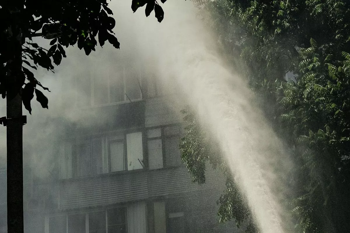 Первые пожарно-спасательные подразделения на место ЧП прибыли через 10 минут после поступления вызова. В ходе осмотра и оценки места пришествия пожарные установили, что горели 2 квартиры на 9 этаже.