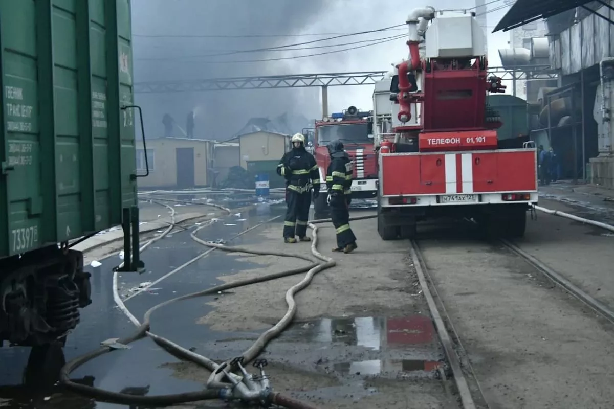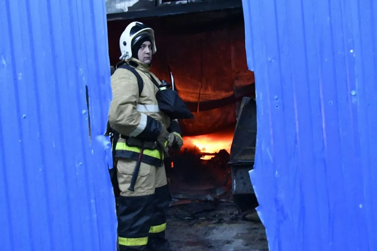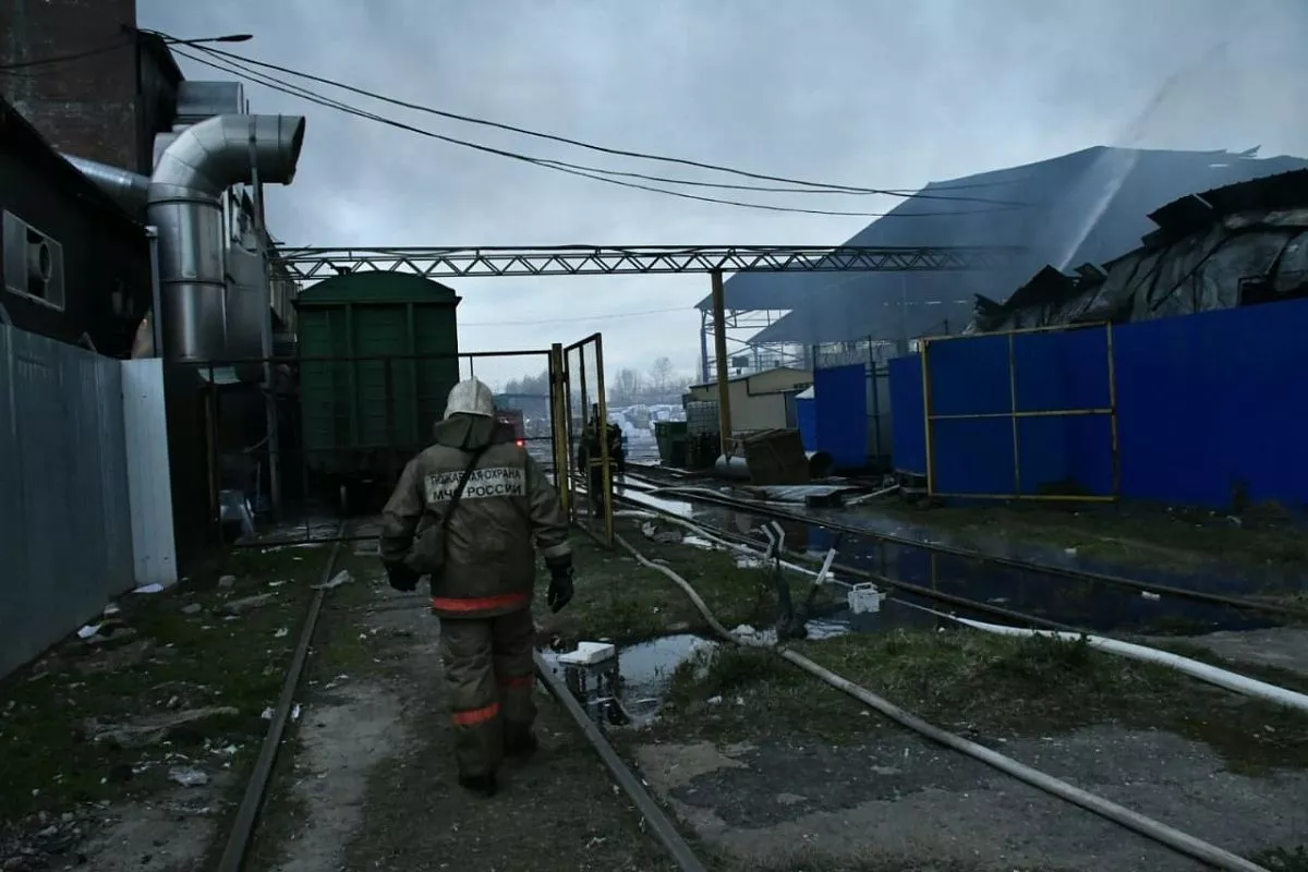 Пожар на складе в районе Рубероидного завода был локализован на площади 1,4 тыс. кв.м.