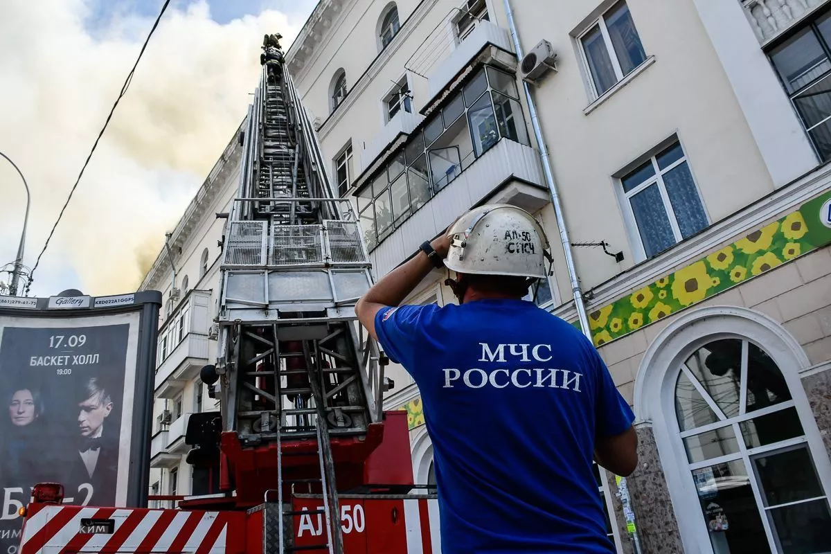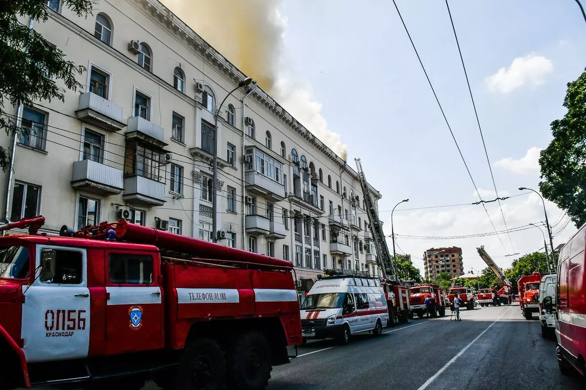 На 14.00 площадь возгорания составила 350 квадратных метров. Жильцов дома эвакуировали. Развернут оперативный штаб, работают пожарные расчеты МЧС России. Задействованы 36 пожарных и 12 единиц техники. На место происшествия приехал мэр Краснодара Евгений Первышов.