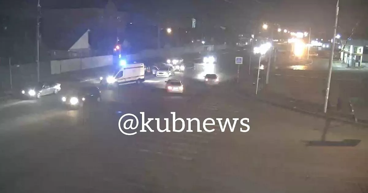 Как сообщил «Кубанским новостям» источник в оперативных службах региона, около 01.00 14 января на перекрестке улиц Российской и Петра Метальникова легковой автомобиль врезался в четыре машины, которые остановились на перекрестке на красный сигнал светофора.