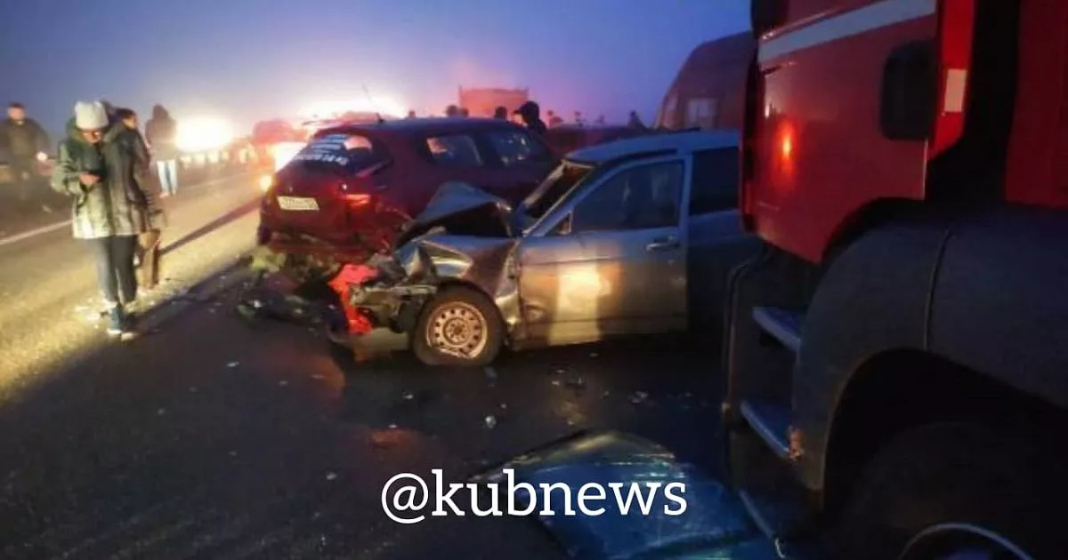 Утром 17 января на въезде в Краснодар со стороны Адыгейска произошло массовое ДТП.