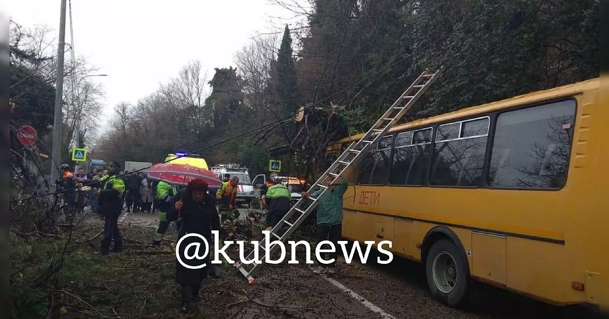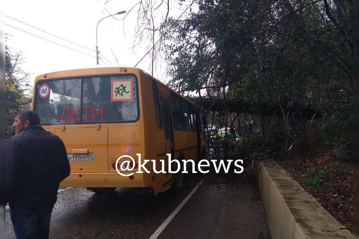 Как рассказал «Кубанским новостям» источник в оперативных службах региона, большое дерево на обочине неожиданно упало на проезжавший мимо него школьный автобус и перекрыло движение по трассе.