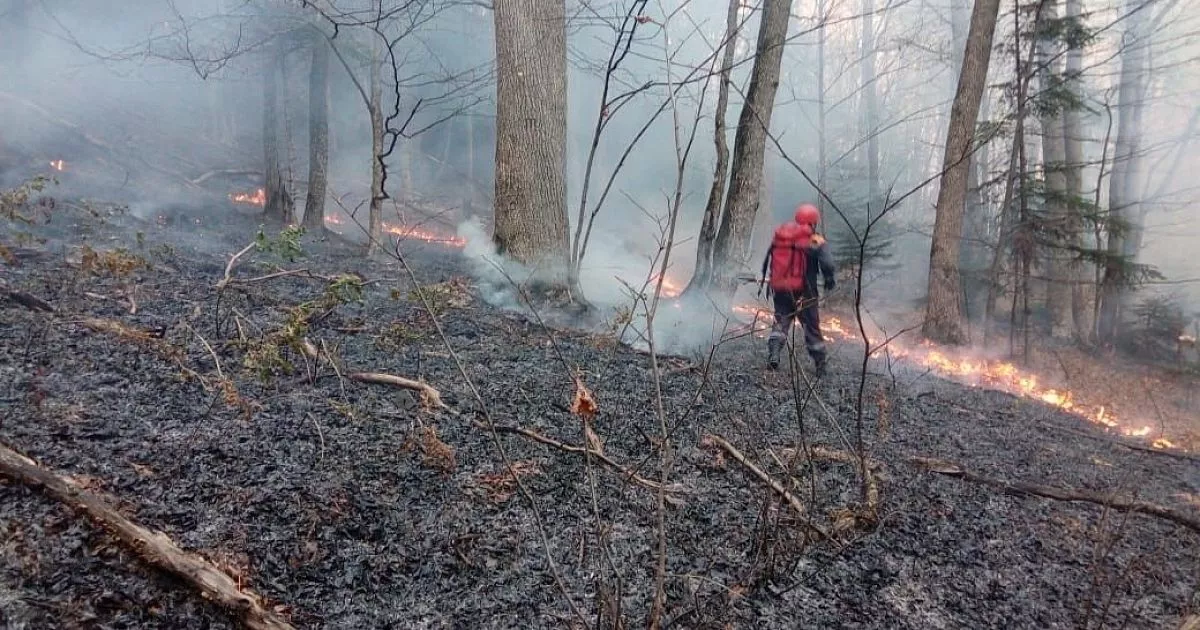 Возгорание произошло днем 6 апреля на территории двух лесничеств.