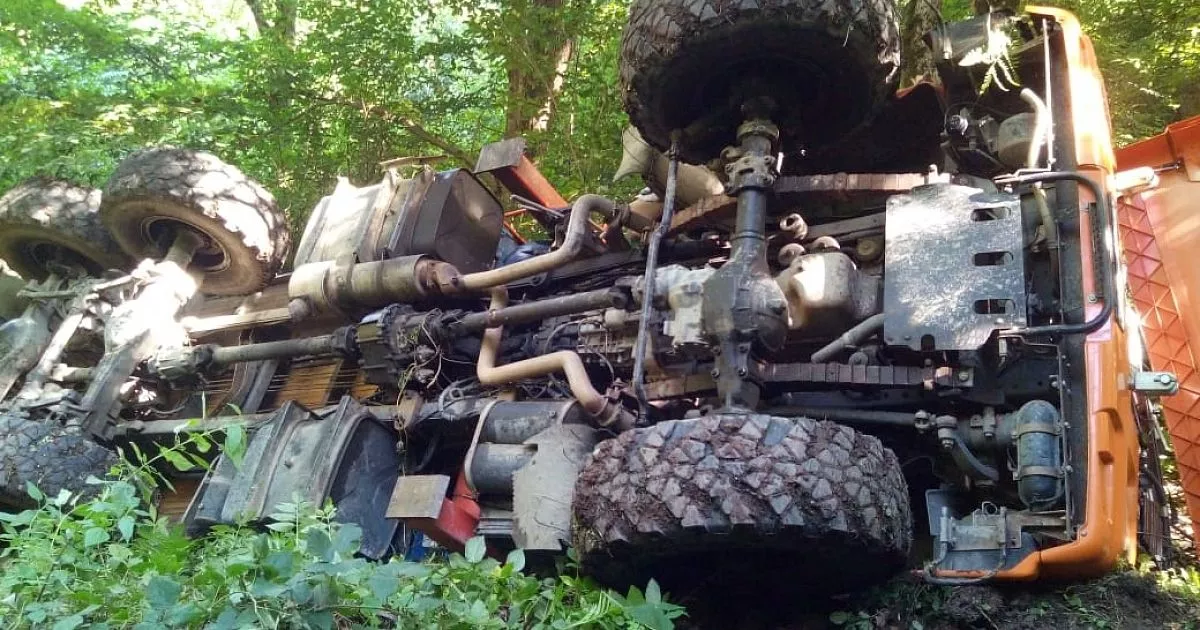 Днем 25 июня в отряд через «112» поступило сообщение о том, что на лесной дороге недалеко от аула Хаджико в Лазаревском районе города на крутом склоне перевернулся КАМАЗ, двое мужчин заблокированы в кабине. Скорая туда добраться не может из-за плохого состояния дороги.