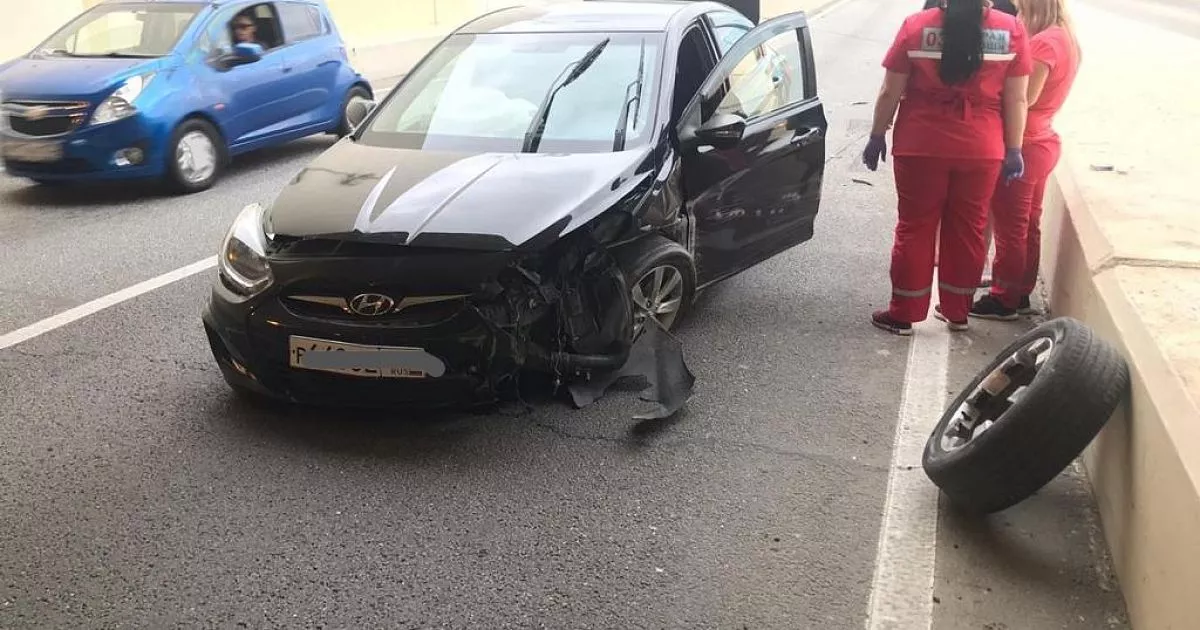 По предварительным данным, водитель Hyundai Solaris при движении допустил наезд на бетонный колесоотбойник справа, потерял управление, продолжил движение и на правом закруглении допустил наезд на бетонный колесоотбойник слева.