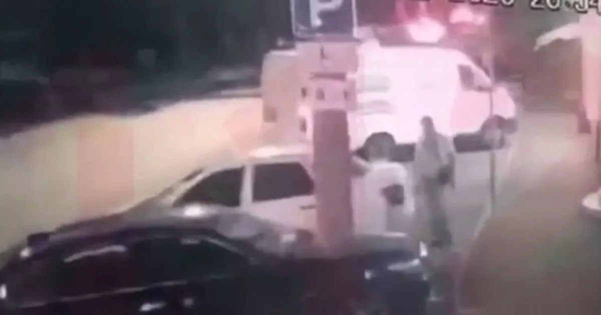 Момент нападения запечатлели камеры видеонаблюдения. На кадрах видно, как с заднего пассажирского сиденья выходит мужчина и стреляет в свою жертву, после чего автомобиль быстро уезжает.