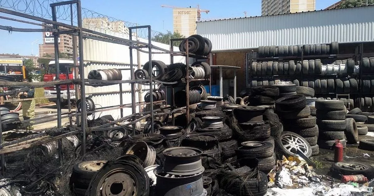 Днем 11 июля в Краснодаре на улице Красных Партизан в районе ТЦ «Лента» произошел крупный пожар. Как выяснилось, загорелся павильон станции техобслуживания. Горели шины.