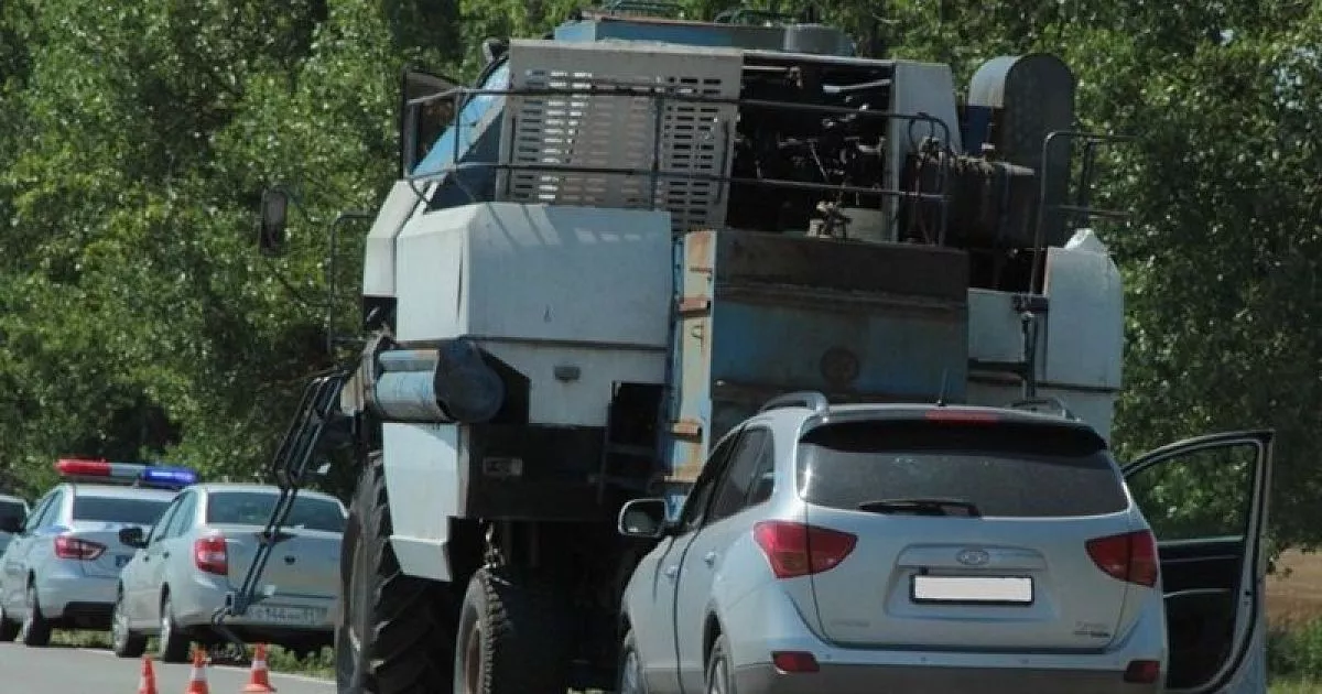 Сотрудниками полиции установлено, что с двигавшимся в попутном направлении зерноуборочным комбайном столкнулась иномарка, которая ехала сзади.