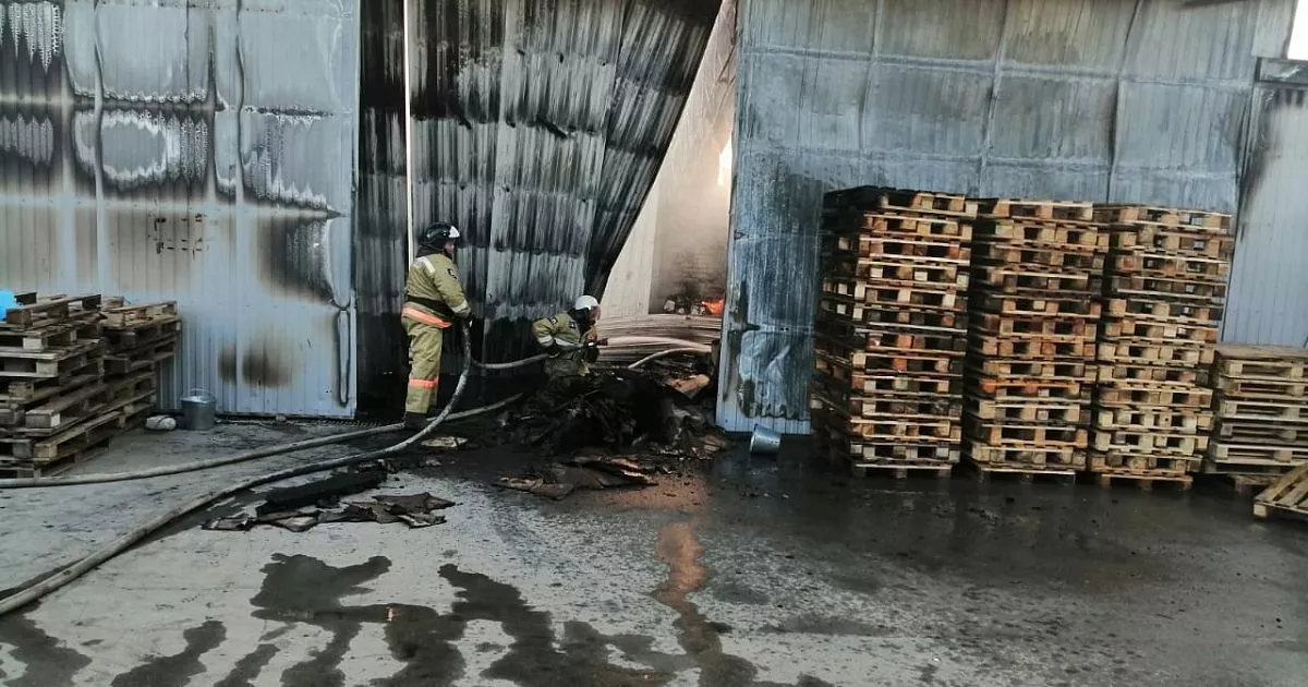 Спустя 5 минут на место прибыло первое подразделение. Выяснилось, что горит кровля на складе готовой продукции. Площадь пожара составляет 300 квадратных метров.