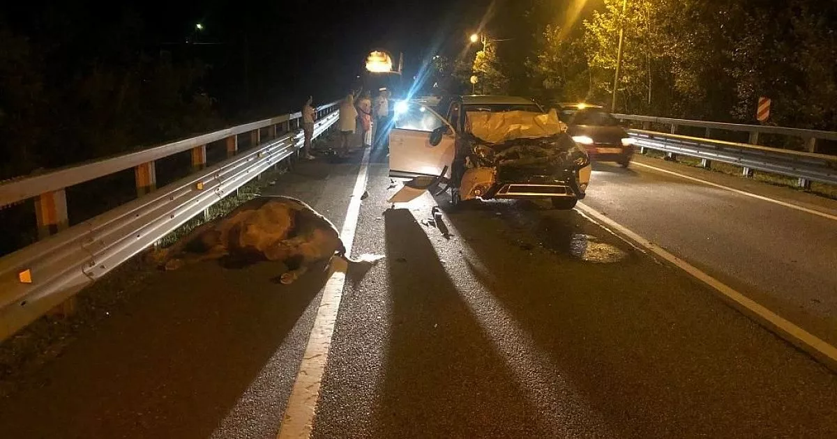 По предварительным данным, водитель автомобиля «Мицубиси» при движении допустил наезд на животное, которое двигалось по проезжей части дороги во встречном направлении. В результате ДТП водитель и пассажир автомобиля не пострадали, сообщает отдел пропаганду ОГИБДД УВД по Сочи.