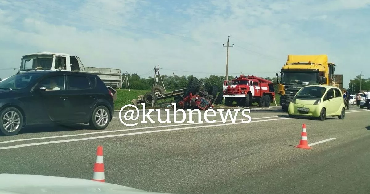 - По предварительным данным, в 11.30 в районе 6-го км автодороги Краснодар - Темрюк водитель, управляя фурой MAN с полуприцепом, не выдержал безопасную дистанцию и столкнулся с трактором МТЗ с прицепом, - прокомментировал «Кубанским новостям» старший инспектор по пропаганде УГИБДД ГУ МВД России по Краснодарскому краю Павел Окружко.