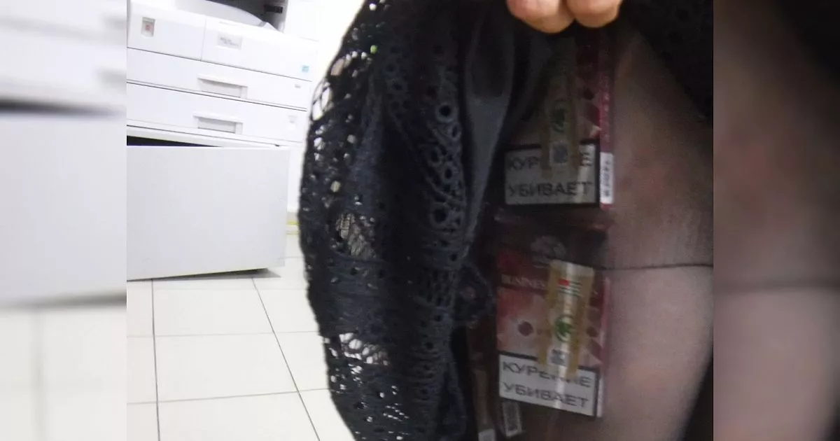 Наличие характерных звуковых сигналов при прохождении женщины через стационарный металлоискатель указало на возможное перемещение незаконного товара. В результате личного таможенного досмотра было установлено, что под платьем в чулках у нее находились 50 пачек сигарет.