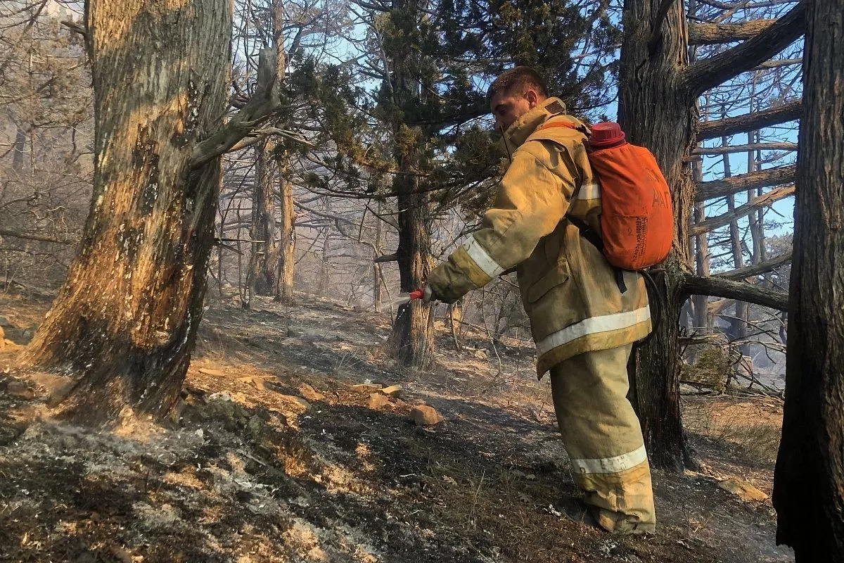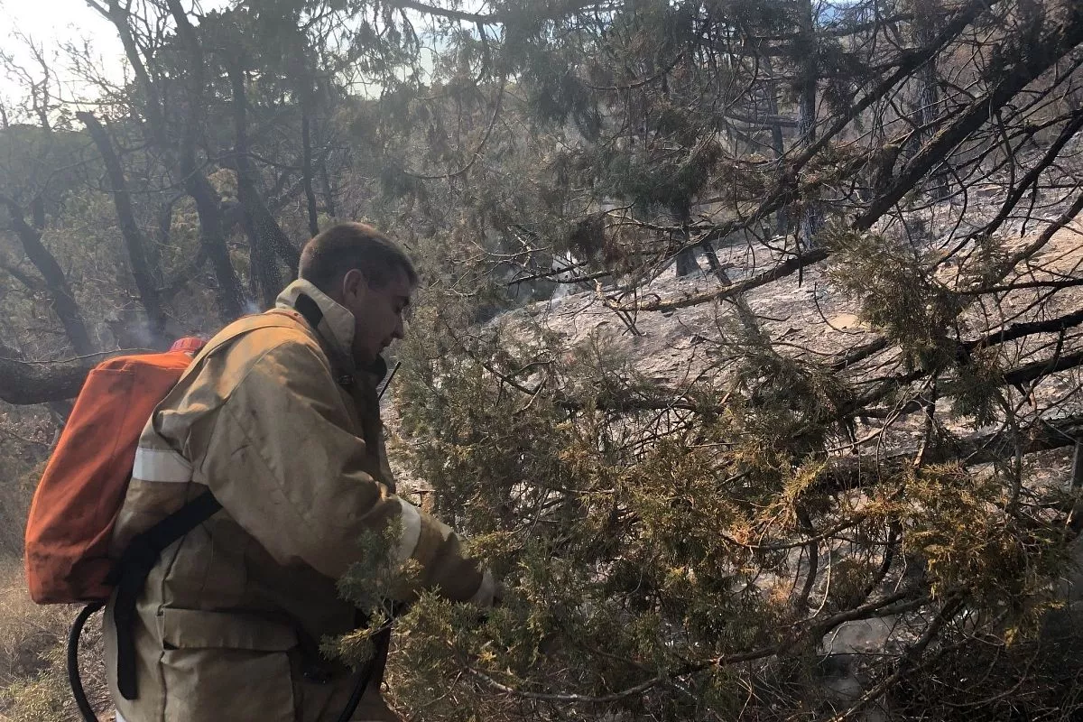 Наиболее сложная обстановка с пожаром остается в Анапе, где между двух населенных пунктов Большой и Малый Утриш действует лесной пожар на площади активного горения 2 га.