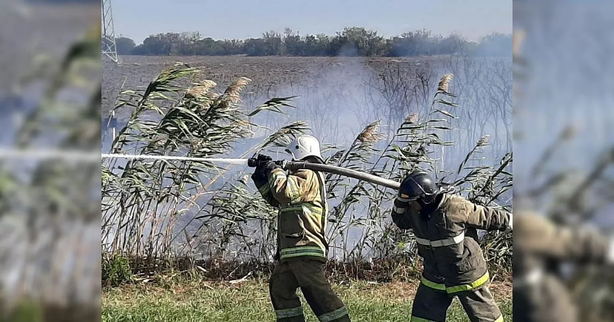По состоянию на 17.00 происходило тление корневой части камыша. К этому времени пожарные ликвидировали два из пяти очагов возгорания.