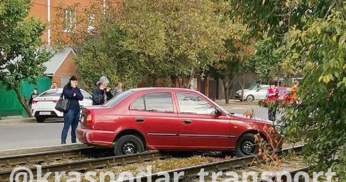 Влетевший на рельсы автомобиль перекрыл одну из полос трамвайных путей. Сдвинуться с места водитель не смог самостоятельно. Трамваи, идущие по направлению к улице Солнечная, стали скучиваться напротив попавшим в ловушку авто. Очевидцам удалось снять не совсем обычное происшествие на мобильные телефоны. Фото и видео уже попали в социальные сети.