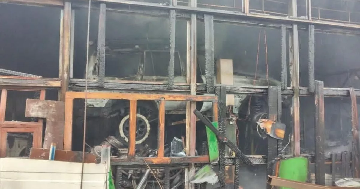 К тушению привлекались 21 человек и 6 единиц техники. В результате пожара повреждены два автомобиля.