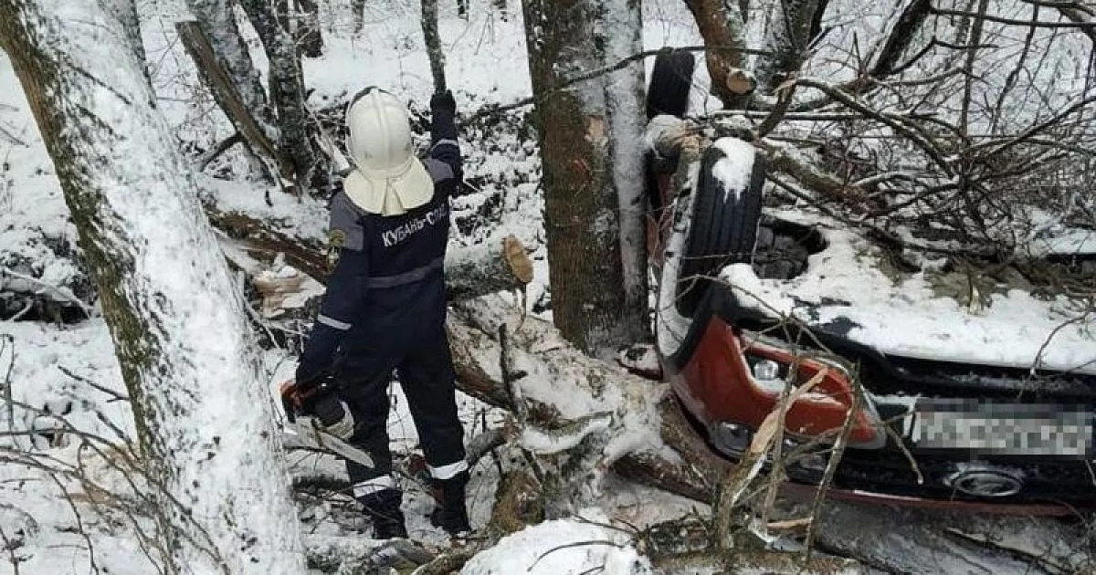 Машина застряла в деревьях. На месте аварии спасатели при помощи бензопилы распилили ветки, освободили автомобиль и обеспечили подъезд эвакуатора для дальнейшей работы, сообщает пресс-служба «Кубань-СПАС».