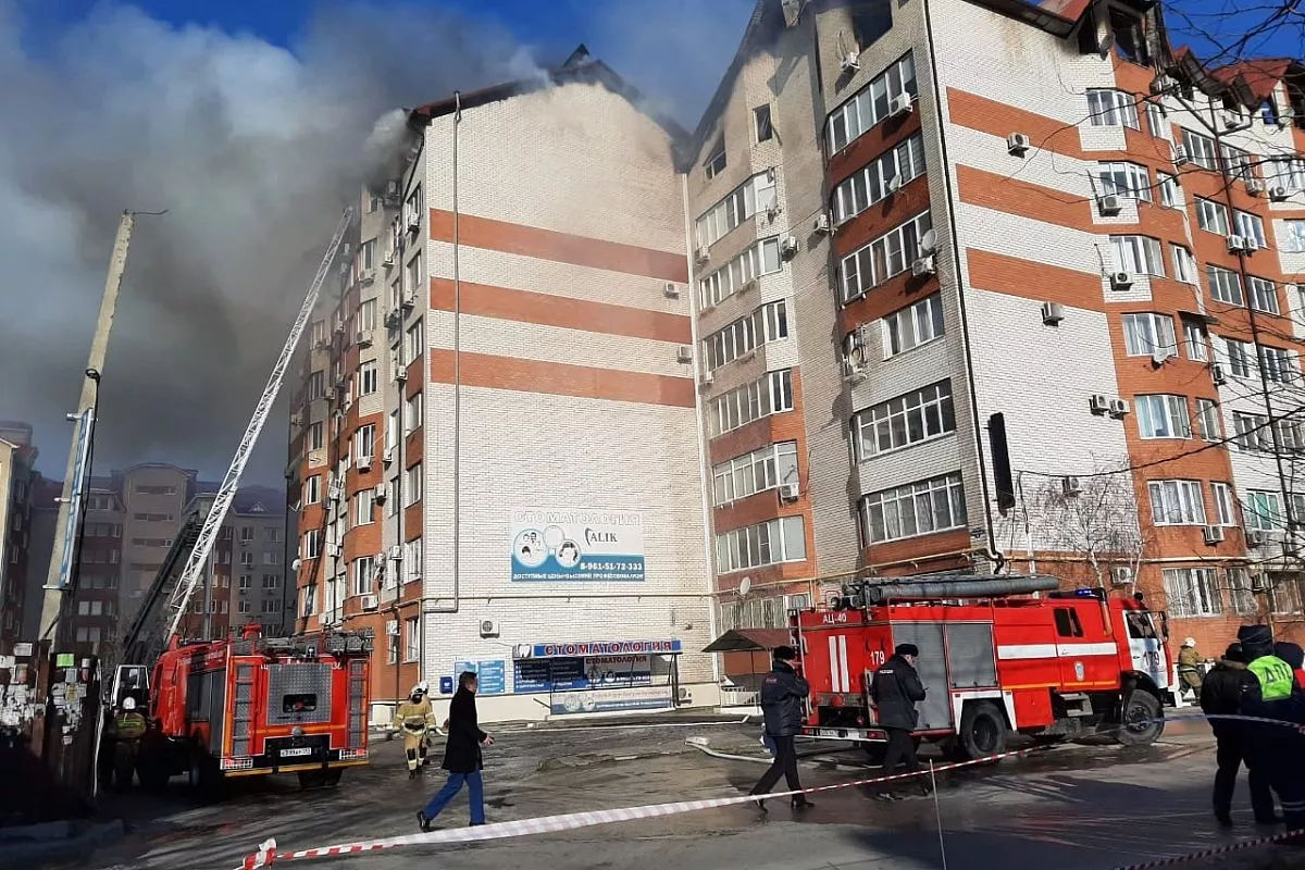 Крупный пожар произошел в восьмиэтажном доме в Анапе 12 марта.