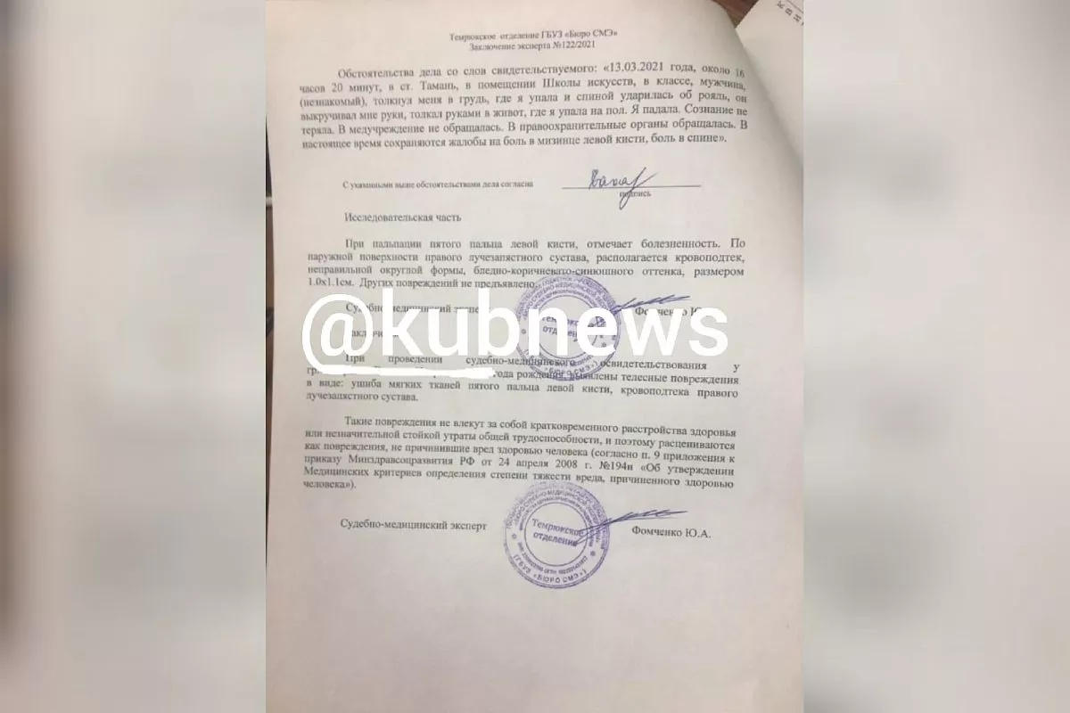 Инцидент произошел 13 марта в детской школе искусств станицы Тамань Темрюкского района.