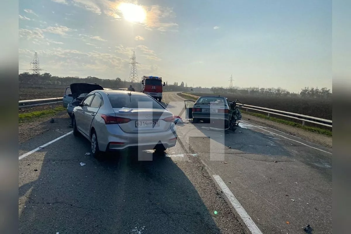 Как сообщил «Кубанским новостям» источник в оперативных службах региона, водитель на ВАЗ-2114 ехал по автодороге из Темрюка. Он не убедился в безопасности маневра и пошел на обгон ВАЗ-2112. На встречной полосе «четырнадцатая» врезалась в другую машину такой же марки и модели. Второй ВАЗ, в свою очередь, откинуло на едущий за ним «Хендэ Солярис», водитель которого потерял управления и протаранил на «встречке» «двенадцатую», которую обгонял ВАЗ-2114