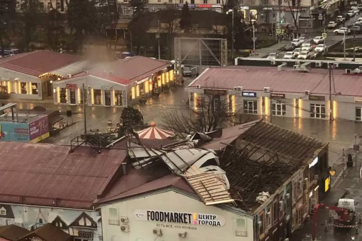 В поселке Северном ветром из дома в буквальном смысле «выдувало» кирпичную облицовку. А в самом центре Краснодаре со здания фудмаркета снесло крышу.