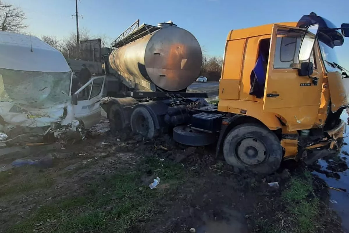 По предварительным данным, 24-летний водитель «КамАЗа» с полуприцепом, двигаясь со стороны поселка Нижневеденеевского в сторону Белореченска, выехал на левую сторону дороги, где столкнулся с автомобилем «Мерседес-бенц Спринтер», под управлением 33-летнего водителя, который двигался во встречном направлении. От удара оба автомобиля съехали с дороги, сообщил «Кубанским новостям» заместитель руководителя отдела пропаганды УГИБДД ГУ МВД России по Краснодарскому краю Павел Окружко.
