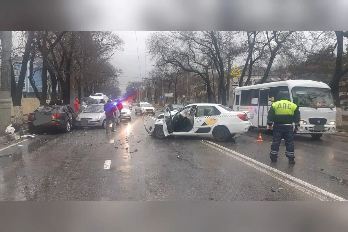 - По предварительным данным, 27 декабря 2021 года в 09.30 в Новороссийске 37-летний водитель за рулем автомобиля «Лексус», двигаясь по улице Анапское шоссе, выехал на полосу встречного движения и столкнулся с «Киа» под управлением 30-летнего молодого человека и «Датсун», за рулем которого был 36-летний мужчина, - прокомментировал «Кубанским новостям» заместитель руководителя отдела пропаганды УГИБДД ГУ МВД России по Краснодарскому краю Павел Окружко.