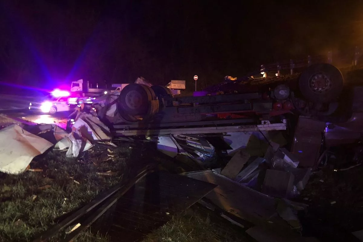 - По предварительным данным, в 06.22 минуты водитель, личность которого устанавливается, за рулем большегруза МАN двигался со скоростью, не обеспечивающей контроля за движением машины, на левом закруглении дороги съехал на обочину, где врезался в ограждение. После этого он опрокинулся в бетонную дождевую канаву, которая располагается ниже уровня дороги, - прокомментировал «Кубанским новостям» заместитель руководителя отдела пропаганды УГИБДД ГУ МВД России по Краснодарскому краю Павел Окружко.