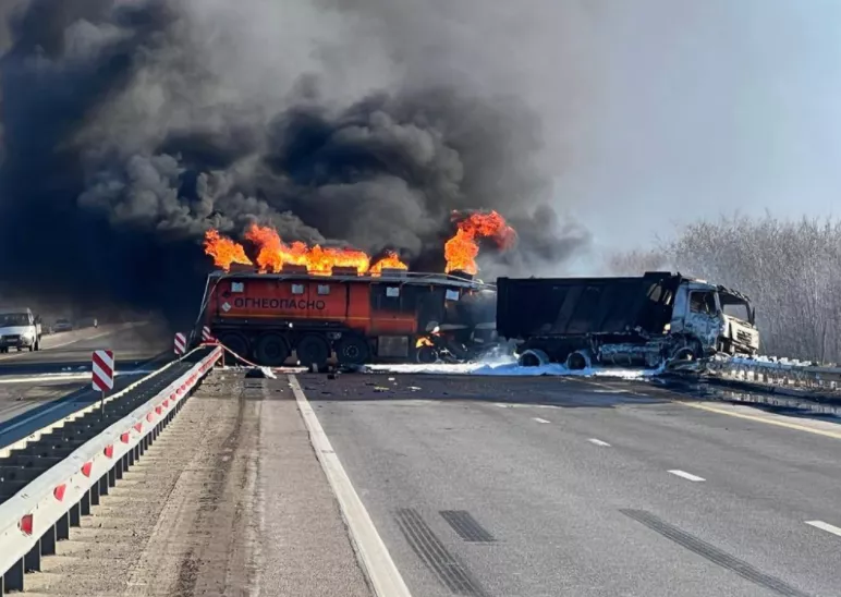 ДТП с участием двух грузовиков и бензовоза произошло в районе хутора Малая Лозовка в Ростовской области.