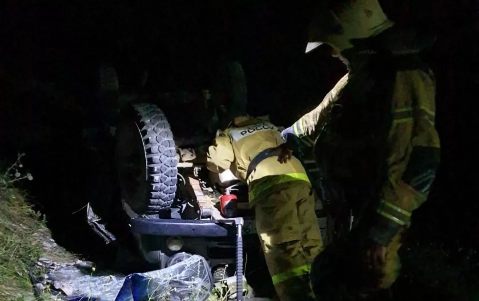 В ночь на 4 августа на Маркотхском хребте опрокинулся внедорожник УАЗ.