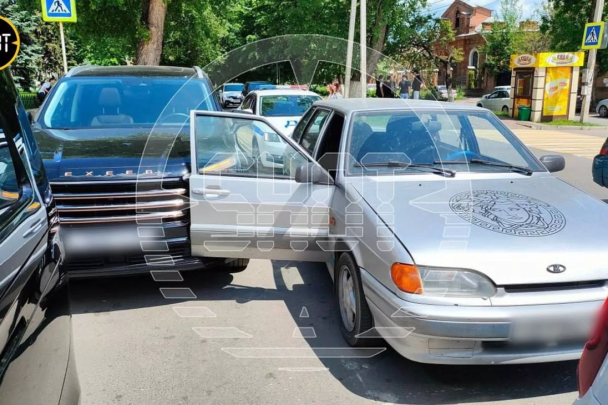 Его водитель остался в машине. В этот момент в иномарку врезался ВАЗ, водитель которого сдал назад с открытой дверью.