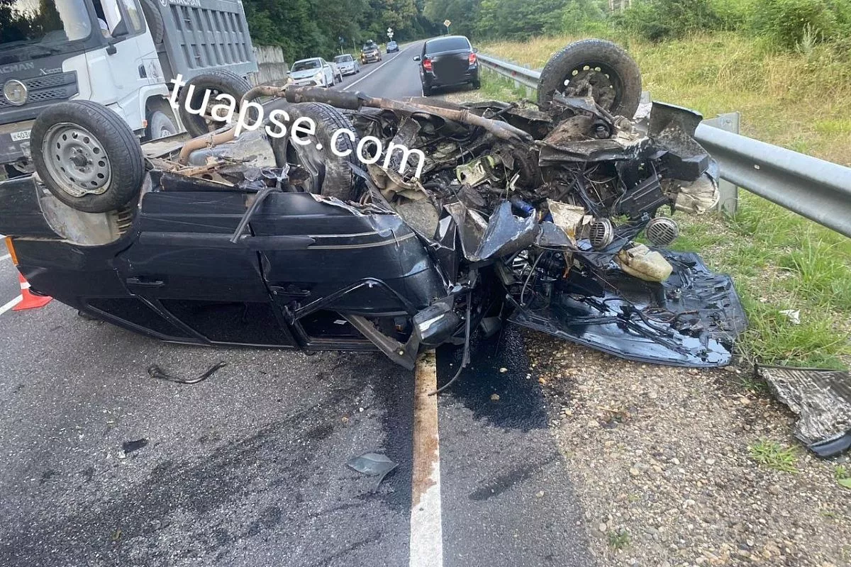 По предварительным данным, 34-летний водитель ВАЗ-2114, двигаясь со стороны Туапсе в сторону села Шаумян, превысил скорость и врезался в бетонную опору. Удар был такой силы, что автомобиль опрокинулся на крышу.