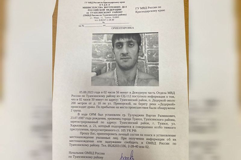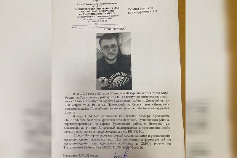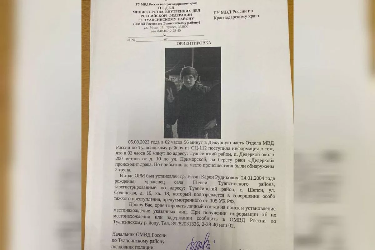 Опубликованы ориентировки на розыск четырех подозреваемых в преступлении. Все они жители Туапсинского района.