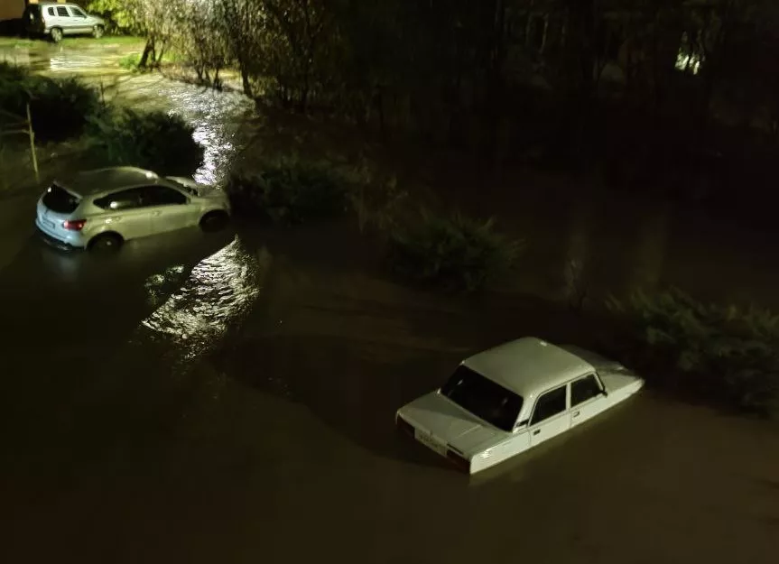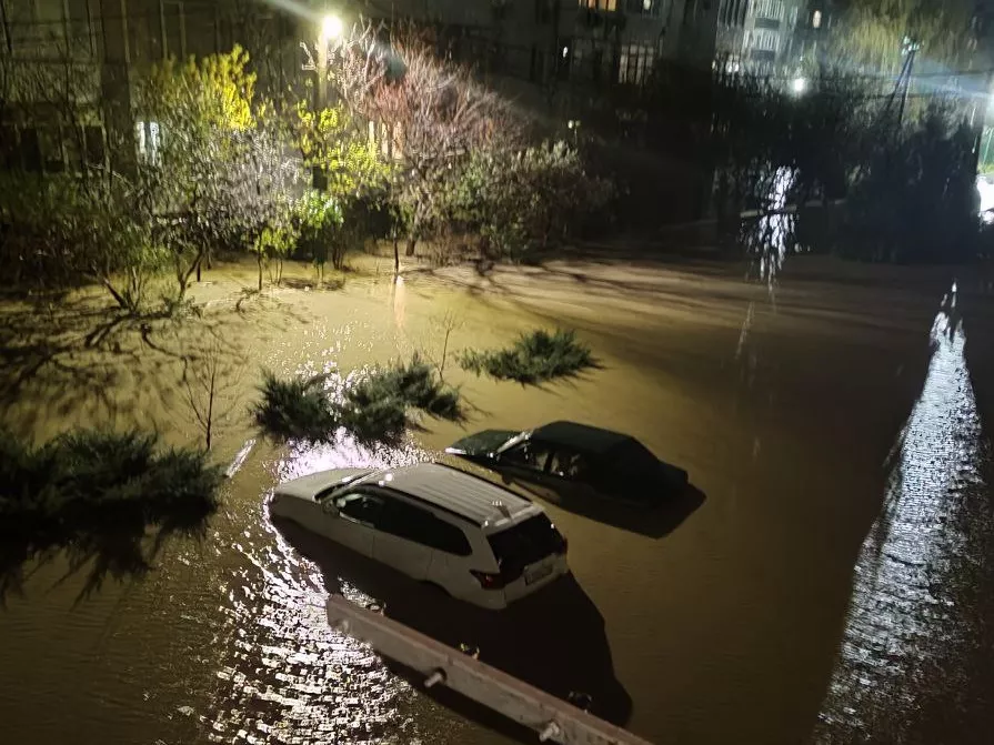 Между тем, большая вода пришла на улицы города и во дворы. Жители делятся кадрами с места.