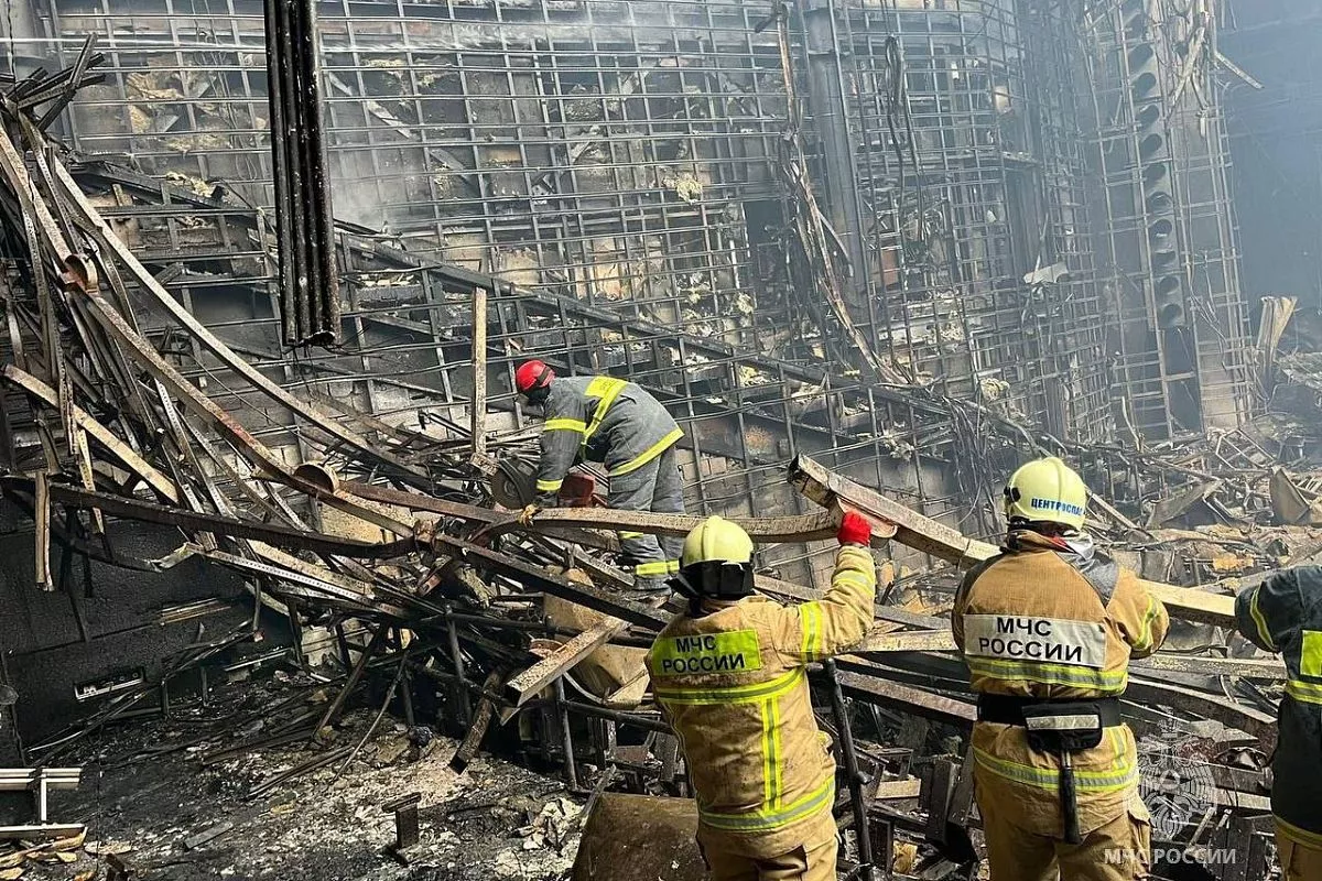 Уже утром 23 марта, когда пожарным удалось его ликвидировать, на месте ЧП приступили к разбору завалов. На кадрах, опубликованных МЧС видно, что концертный зал выгорел полностью, а конструкции разрушены.