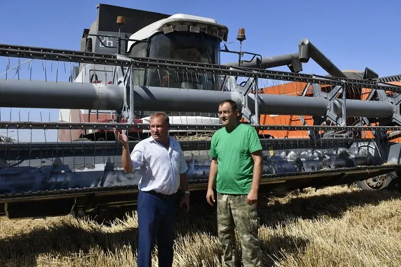 А вот и комбайны. Разворачиваются на краю поля и снова через минуту превращаются в пыльное облако на горизонте. В основном управляют ими комбайнеры старой гвардии Владимир Еременко, Николай Калугин, Андрей Будко. Но и молодежь им уже почти не уступает. Комбайнер Олег Мороз уже снискал себе славу мастера уборки. На транспортировке зерна фору всем дает водитель, которому уже за 70, Юрий Демченко. Хорош в работе и его сын Андрей.