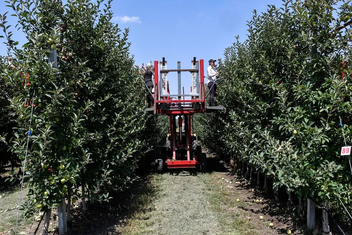 На сегодняшний день в хозяйстве Александра Акимова собирают более 6 тыс. тонн яблок в год, это всего 35 процентов заложенных мощностей. Поэтому с каждым годом этот показатель растет. Результатов здесь добиваются за счет использования интенсивных и суперинтенсивных технологий. Техника используется только самая современная – например, комбайны и платформы для сбора яблок. А для обрезки сада находят применение пневматические и электрические секаторы. Кроме того, обработка сада проводится двухвентиляторными опрыскивателями.