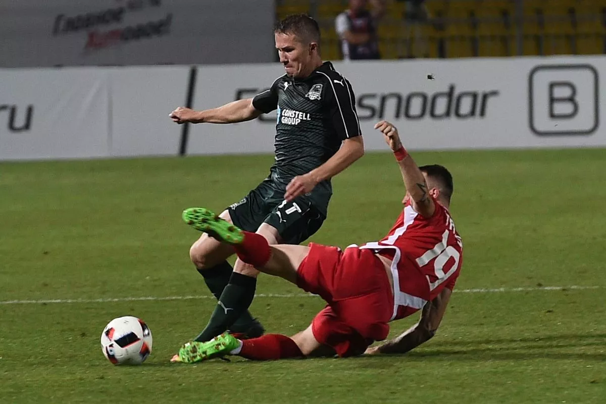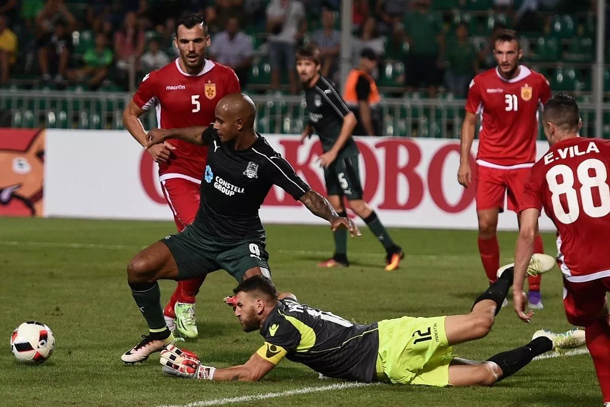 Первый матч раунда плей-офф Лиги Европы УЕФА-2016/17 завершился со счетом 4:0. В матче отличились Смолов, Жоаозиньо, Енджейчик. Автогол был записан на Гезима Красники.