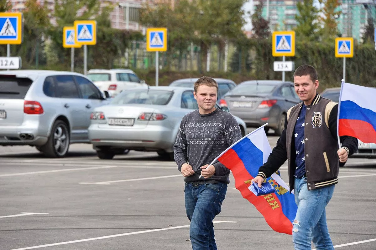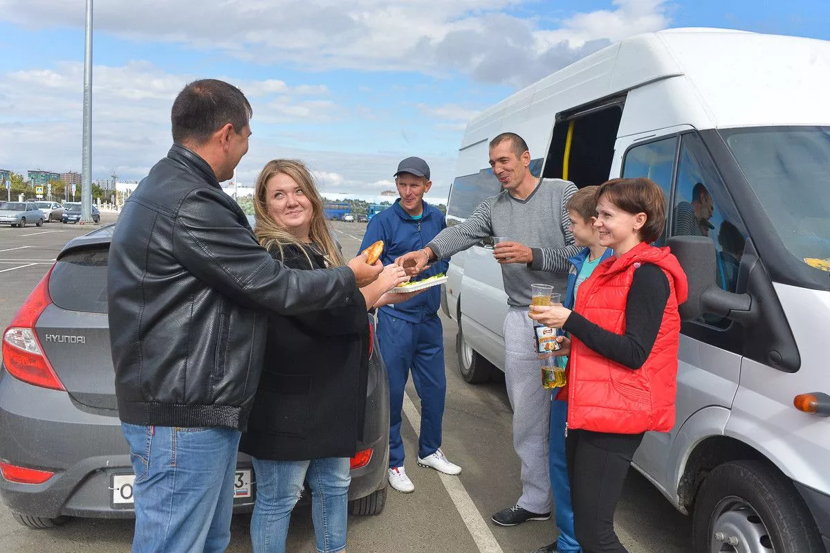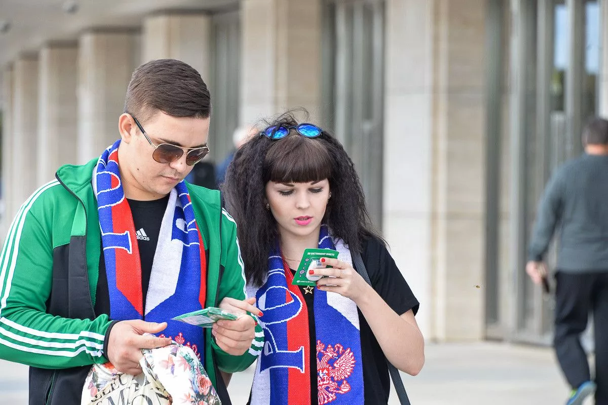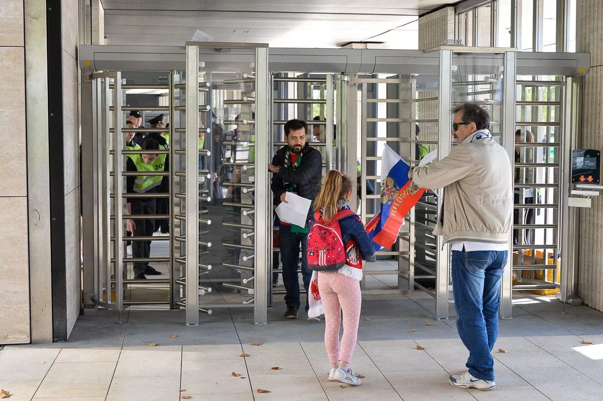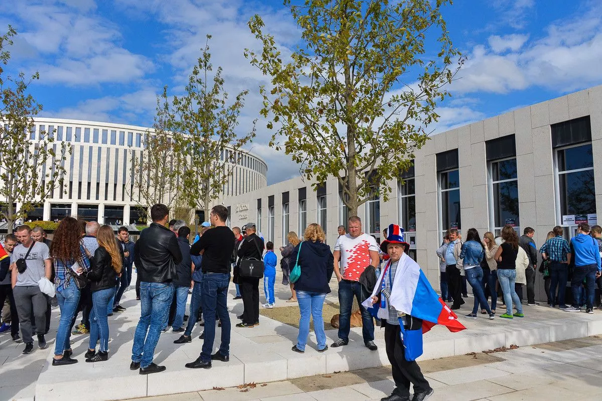 Болельщики собираются на товарищескую встречу.