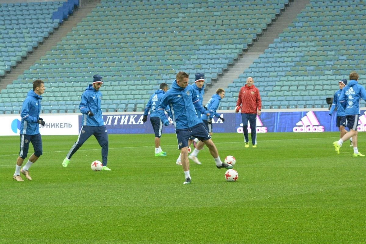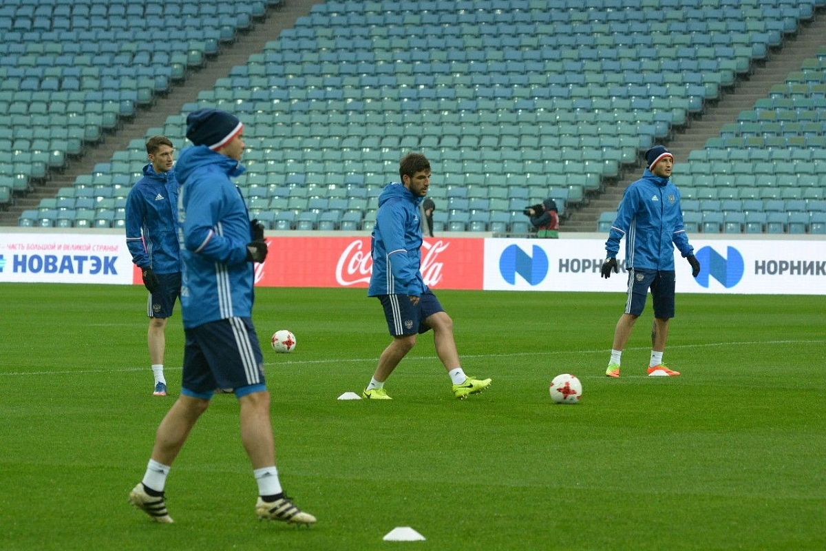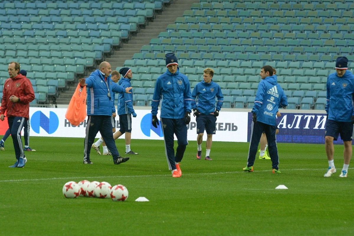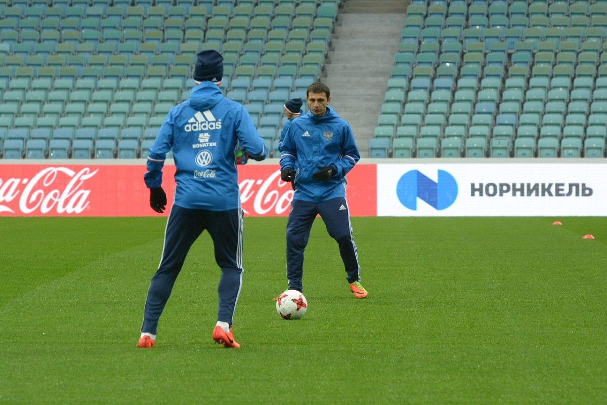 Полчаса пути и сборная России, вылетев из Краснодара, приземлилась в Сочи. Небесная канцелярия, видимо, обидевшись, на проигрыш Кот-д'Ивуару (игра состоялась в Краснодаре 24 марта и закончилась со счетом 0:2 в пользу ивуарийцев), поприветствовала футболистов холодным проливным дождем. Но кубанское гостеприимство немного согрело - от трапа самолета для команды расстелили красную ковровую дорожку и встретили в национальных костюмах с хлебом и солью. Подбодрить футболистов было важно, ведь уже завтра, 28 марта, они сыграют в рамках подготовки к Кубку конфедераций контрольный матч против Бельгии. Этот же матч станет открытием сочинского стадиона «Фишт» - реконструкция арены после Олимпийских игр-2014 полностью завершена.