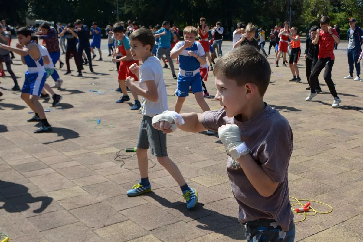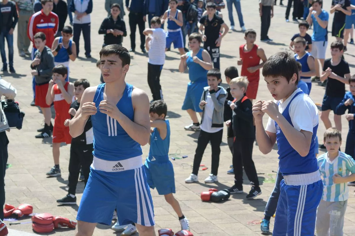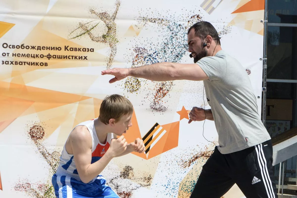 На площади Флага олимпийский чемпион Рахим Чахкиев и Чемпион мира по версиям WBA Денис Лебедев провели открытый мастер-класс по боксу.