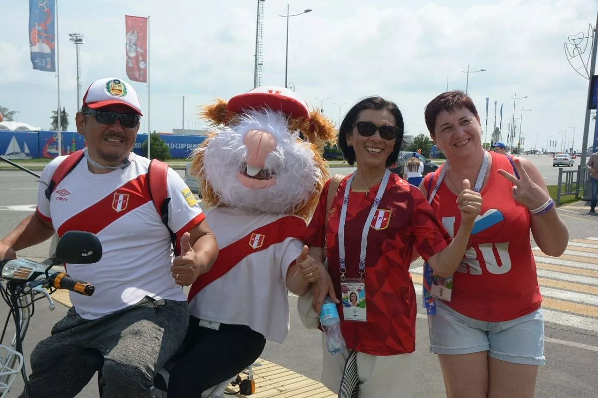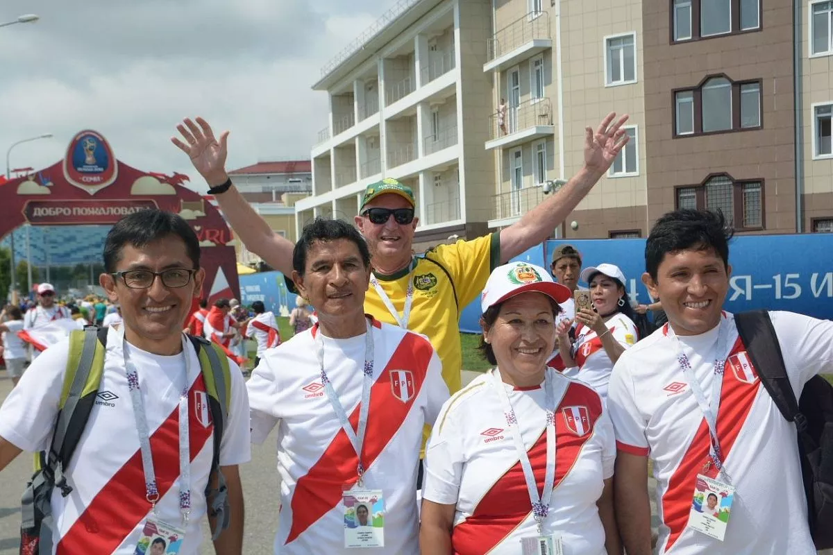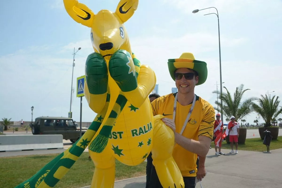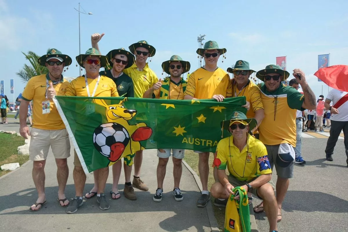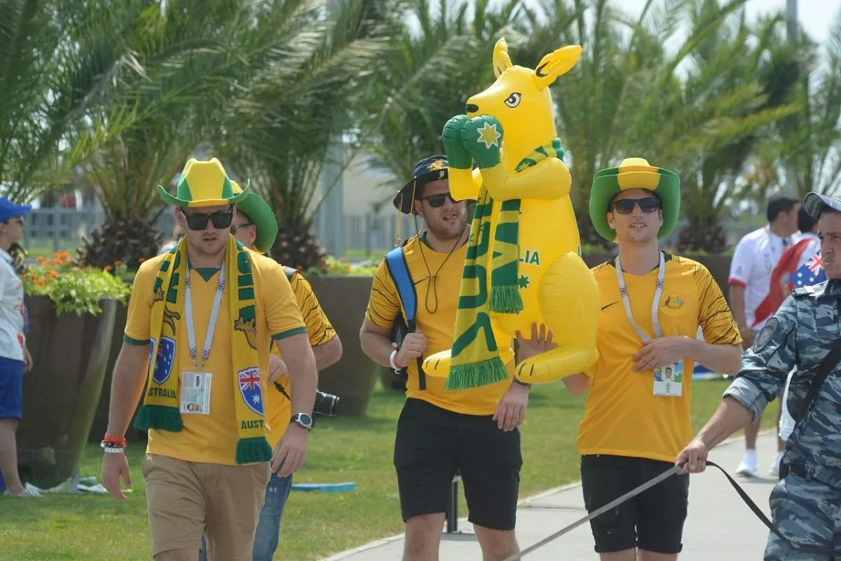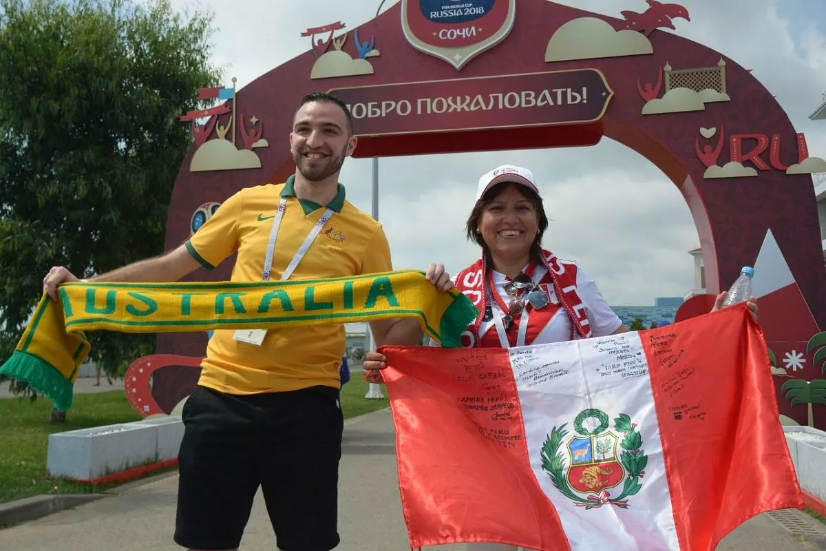 Перед матчем болельщики Перу и Австралии мерялись между собой кричалками, а также фанатской атрибутикой. Австралийцы привезли с собой надувных и плюшевых кенгуру - символ своей страны. Перуанцы в свою очередь надели золотые амулеты своих предков - инков, на которых изображен бог солнца.
