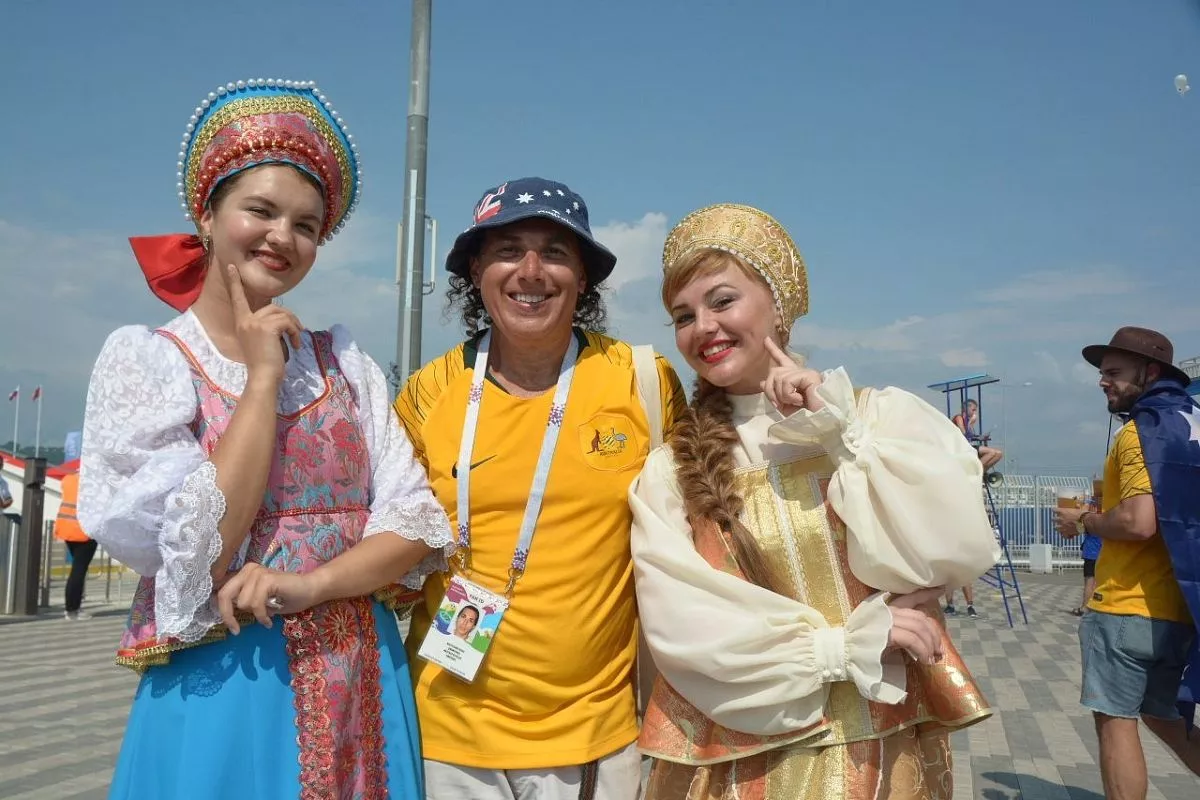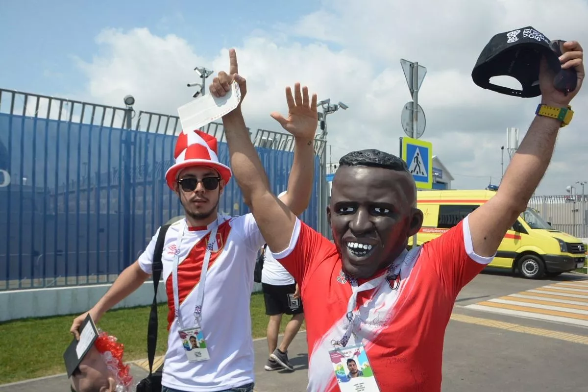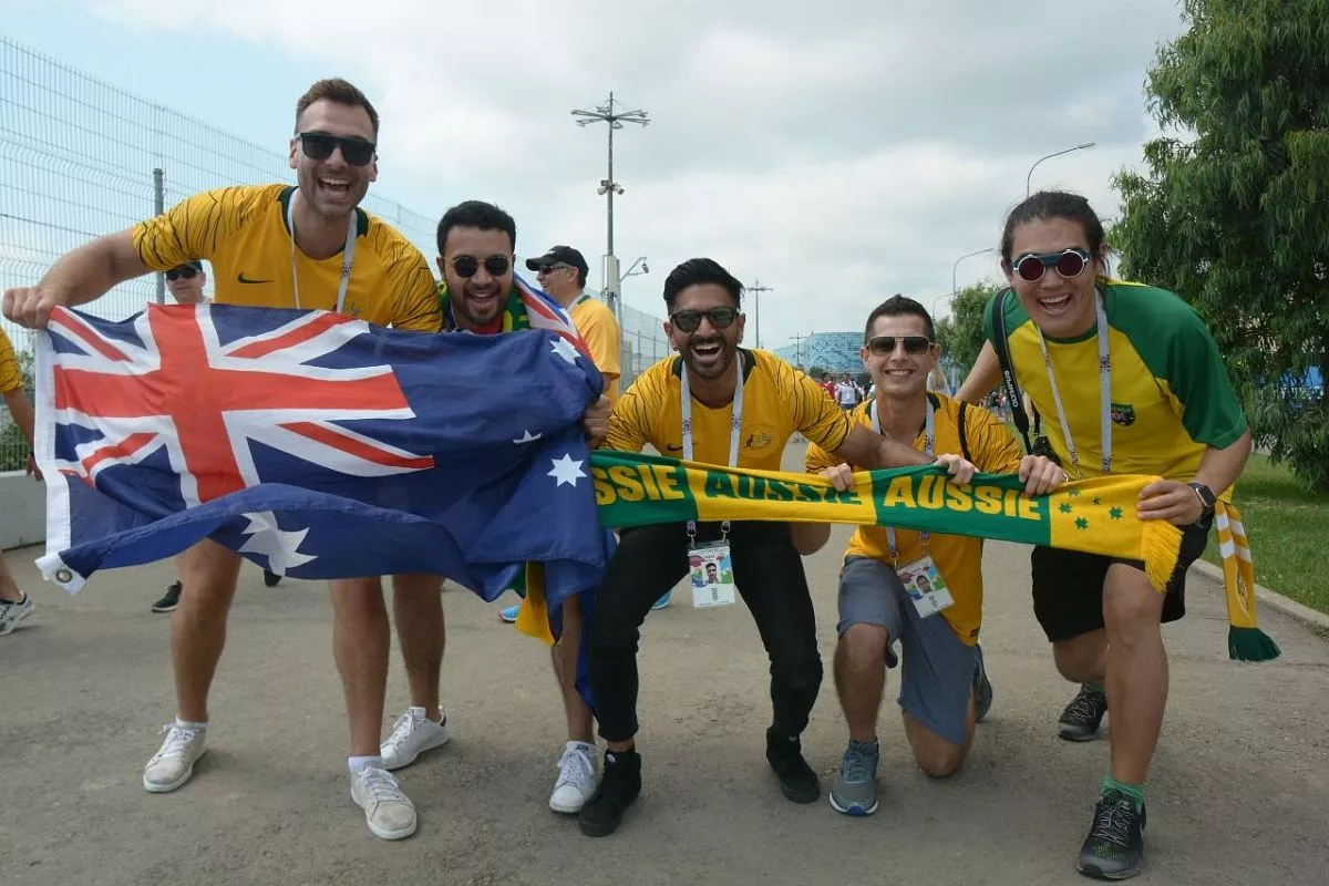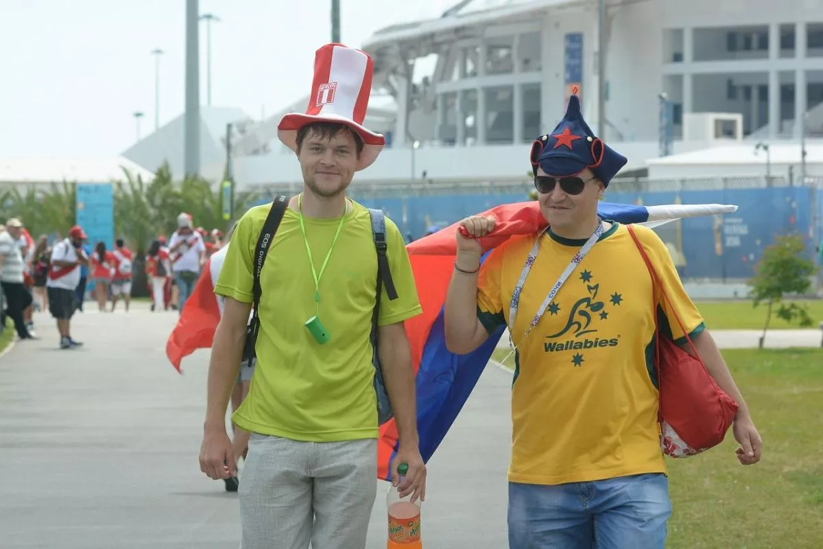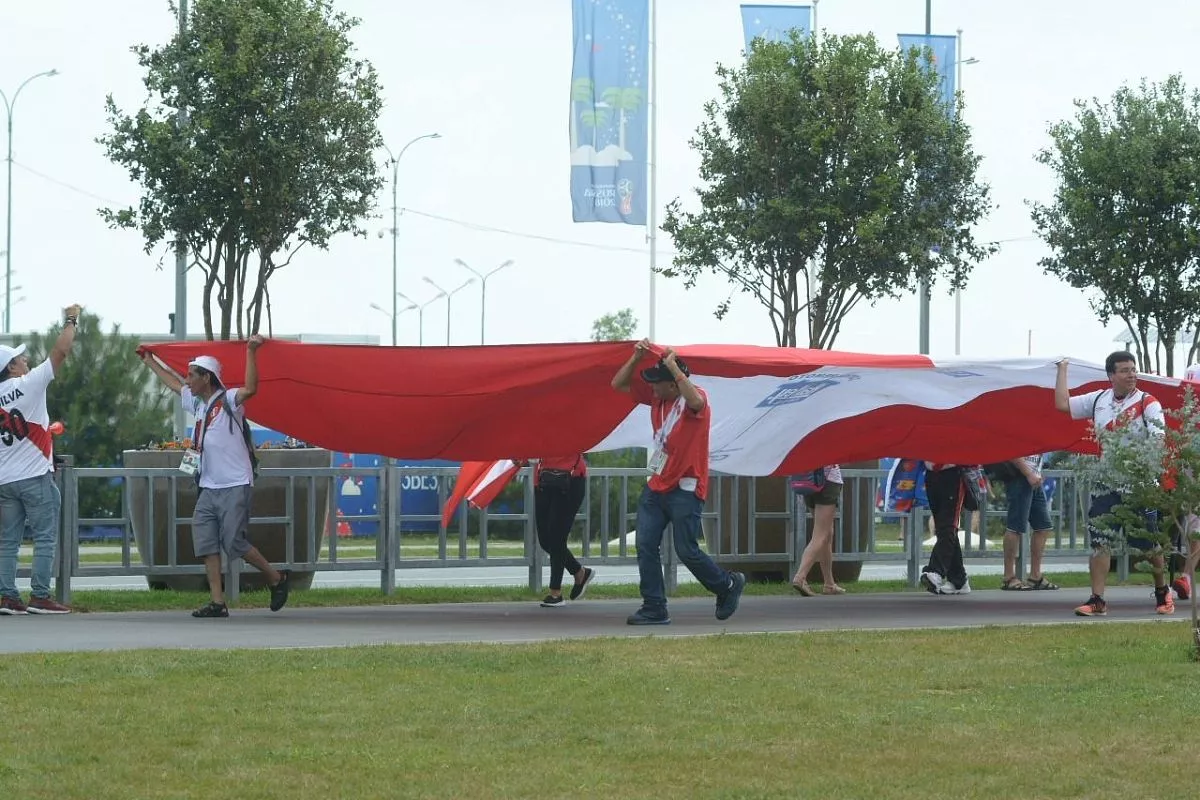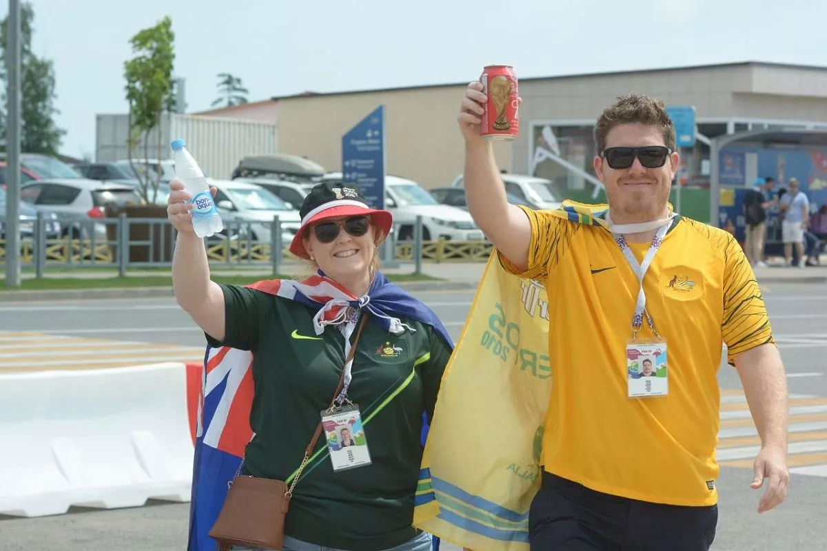 Перед матчем болельщики Перу и Австралии мерялись между собой кричалками, а также фанатской атрибутикой. Австралийцы привезли с собой надувных и плюшевых кенгуру - символ своей страны. Перуанцы в свою очередь надели золотые амулеты своих предков - инков, на которых изображен бог солнца.