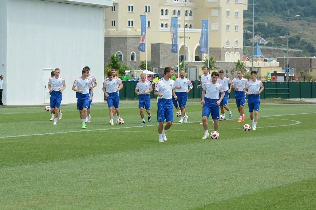 Днем 6 июля российские спортсмены провели в Сочи предматчевую тренировку.
