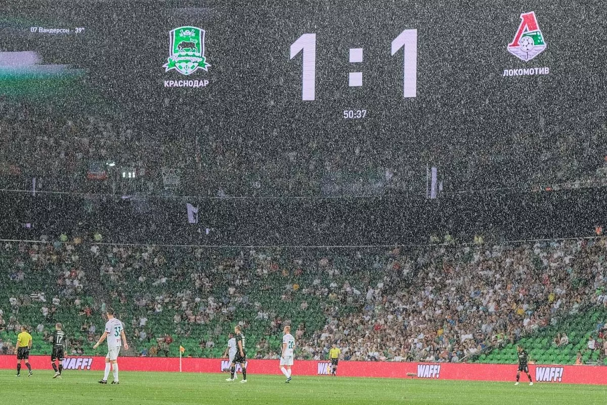 Встреча ФК «Краснодар» – «Локомотив» прошла вечером 1 сентября под проливным дождем.