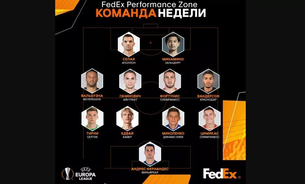 Вандерсон стал единственным представителем российских клубов в команде недели Лиги Европы.