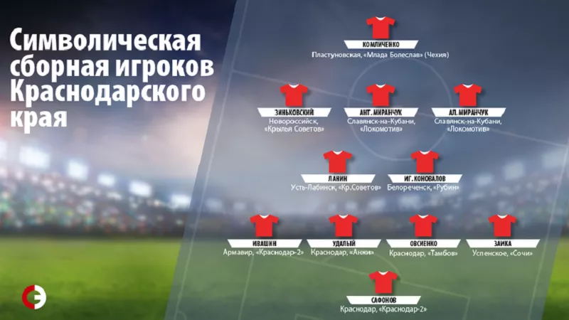 Результаты исследования показали, что в Краснодарском крае родились 109 футболистов, играющих в профессиональных лигах, и 10 игроков, которые выступают в РПЛ. В символическую сборную Краснодарского края попали следующие игроки: Комличенко, братья Миранчуки, Сафонов, Ланин, Ивашин, Зиньковский, Коновало, Удалый, Овсиенко и Заика.