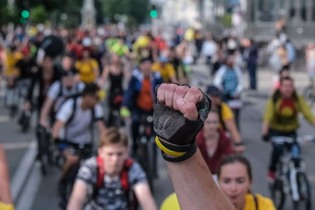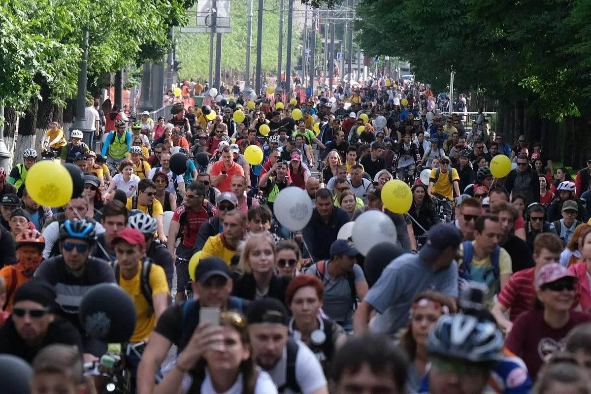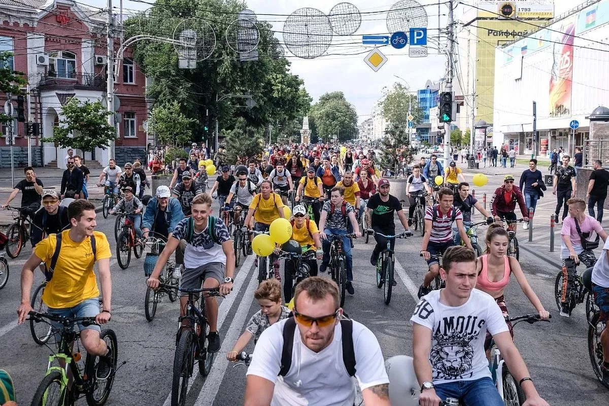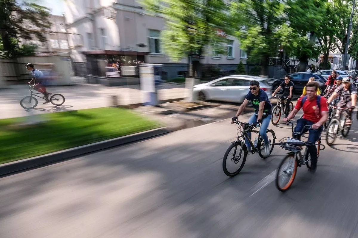 Колонна велосипедистов проехалась по Краснодару в поддержку развития велосипедной инфраструктуры и безопасности на дорогах.