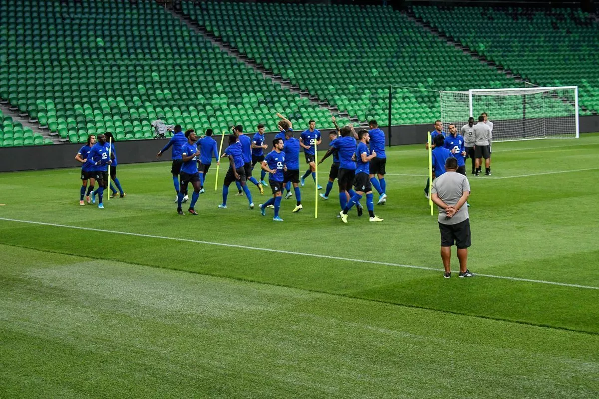 Предматчевая тренировка состоялась вечером 6 августа. На ней игроки были сосредоточены и внимательно слушали наставления тренера.
